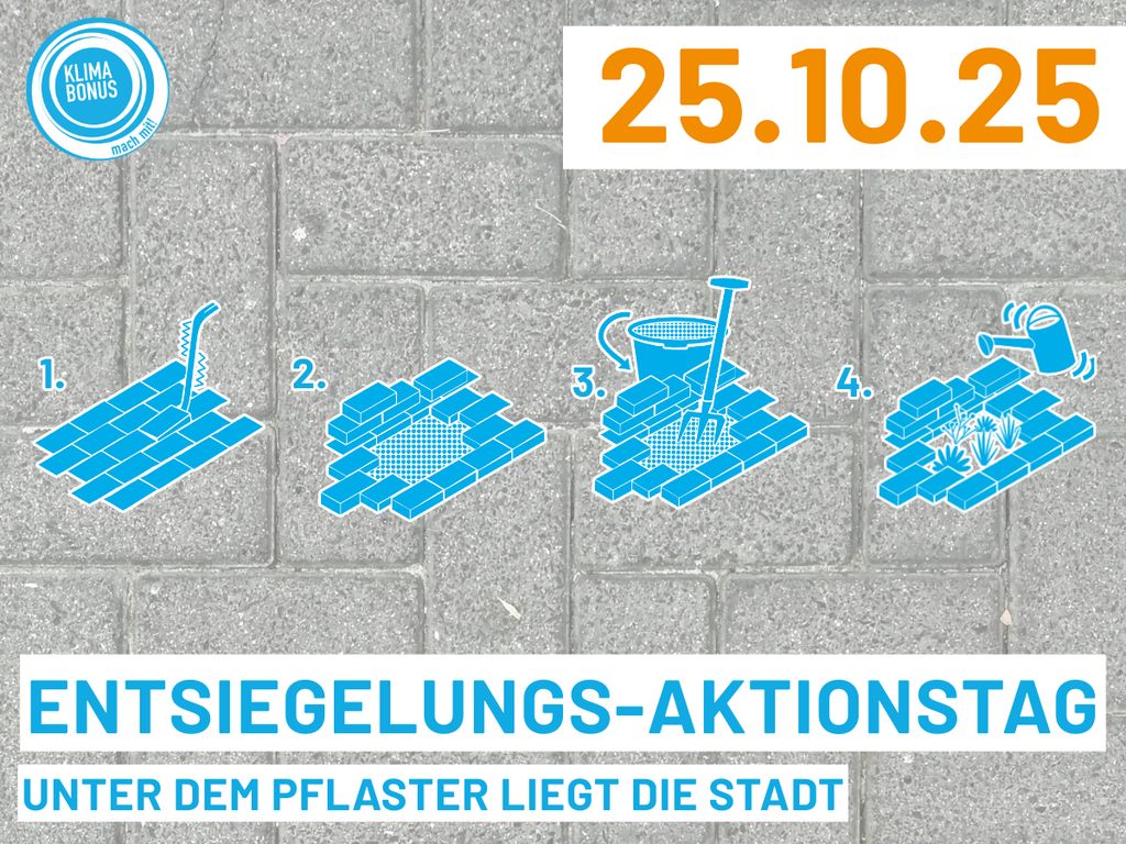 Am 25.10.2025 organisiert der Klimabonus Lüneburg, nach dem Vorbild des niederländischen „Tegelwippen“-Wettbewerbs, zusammen mit anderen Umweltorganisationen einen Entsiegelungs-Aktionstag.