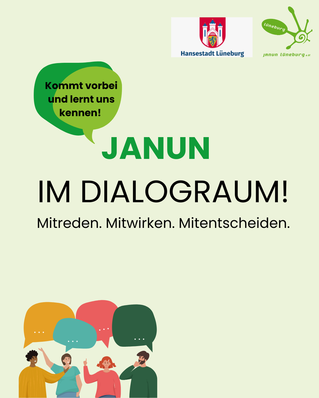 Im Februar ist JANUN Lüneburg mehrfach zu Gast im Dialograum der Hansestadt Lüneburg und lädt dazu ein, den Verein, seine Themen und Engagementmöglichkeiten kennenzulernen.